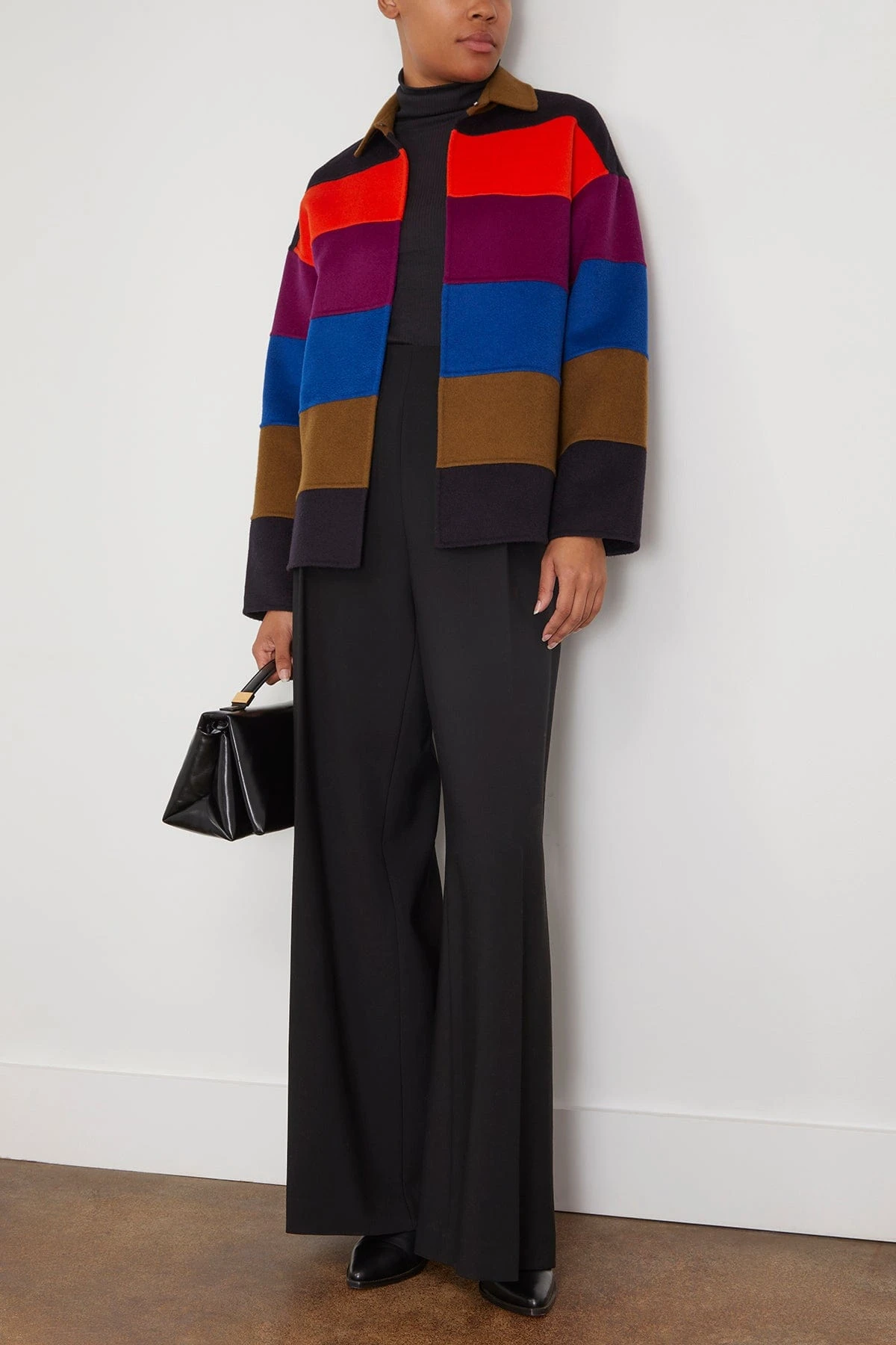 The Odeeh Double Face Cashmere/Wool Jacket in Multicolor is a shirt jacket with shirt collar, and rounded hemline.