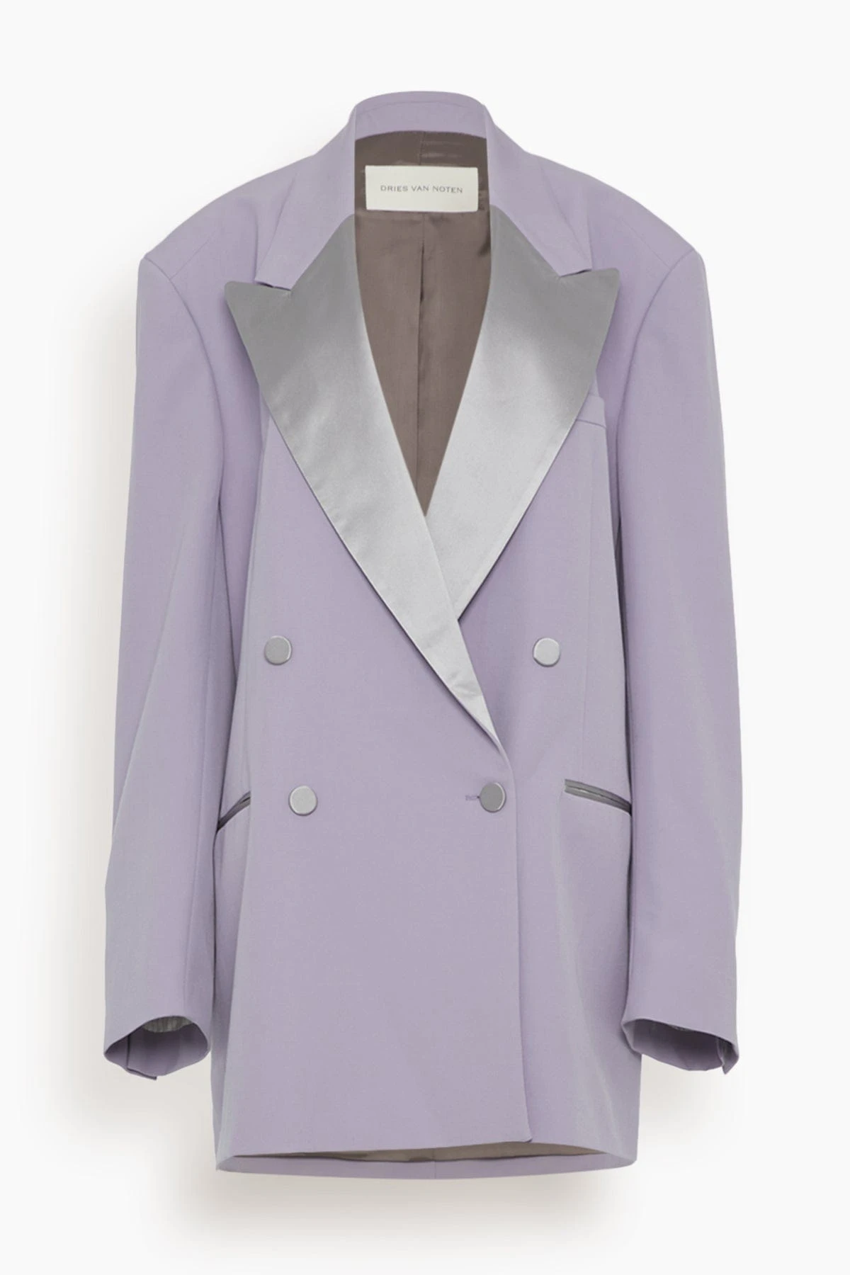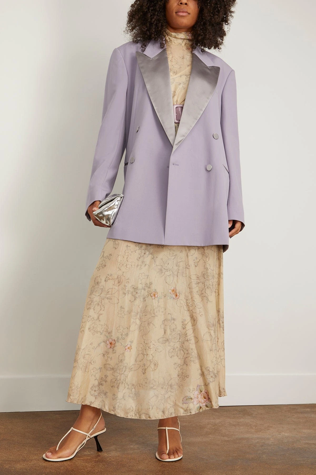 The Dries Van Noten Bliss Tuxedo Jacket in Lilac is a chic oversized jacket. We love it layered over dresses and tops. Material: 100% polyester