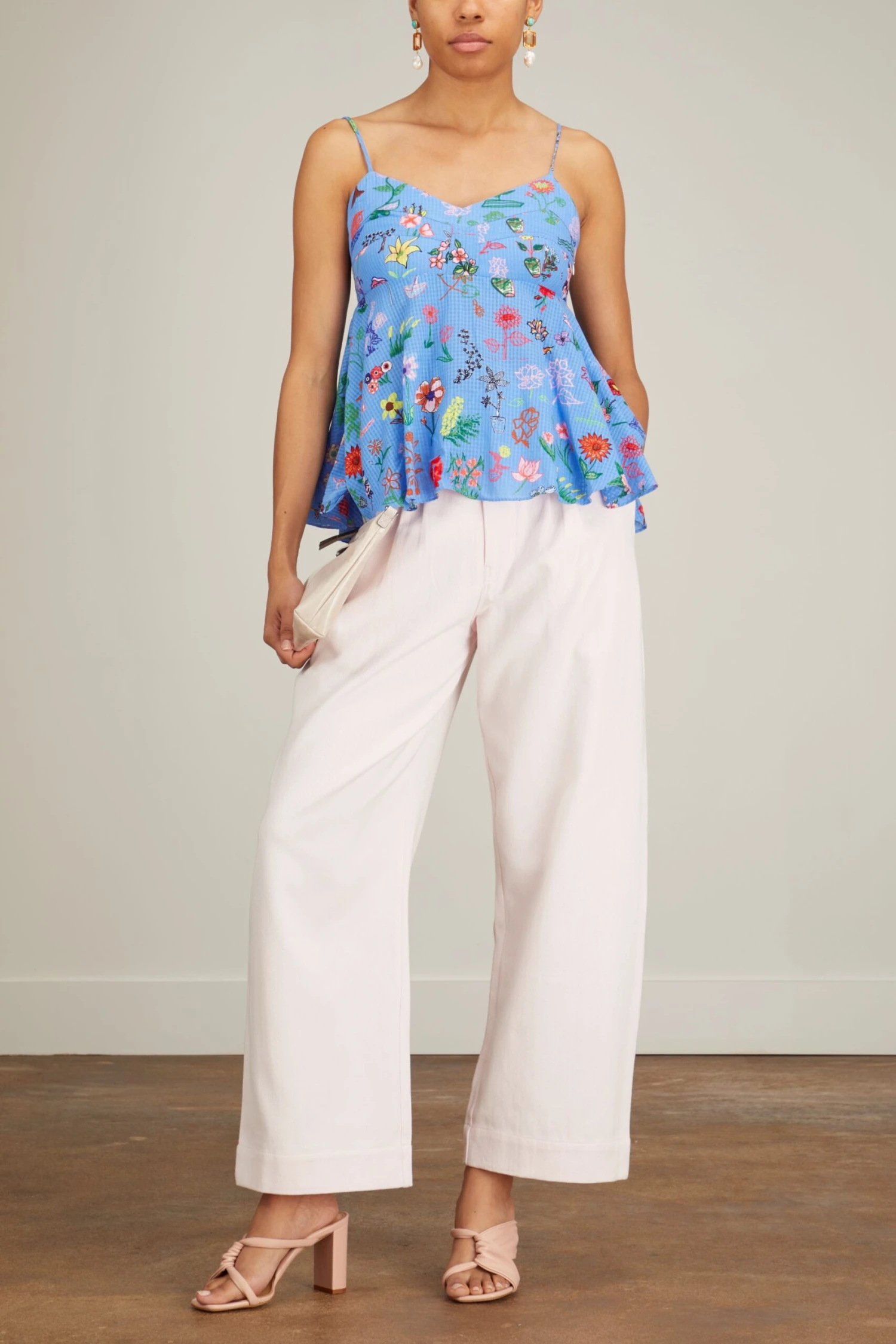 The Mii Handwoven Tie Dye Organic Denim Pant is a fun twist on a classic. This pants feature a high rise and wide tapered leg in tie dyed denim. Wear yours with a blouse and sandals.