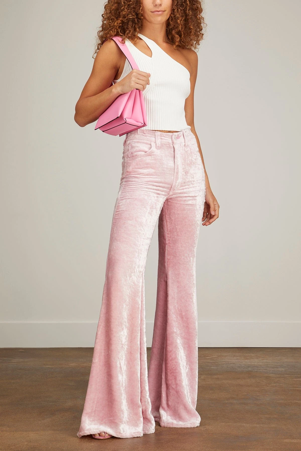 The Cout De La Liberte Heidi Super High Rise Super Bell Trouser is a statement making piece to add to your wardrobe. These jeans feature an ultra flared leg in a bold pink tie dye. Wear yours with a blouse and platforms.