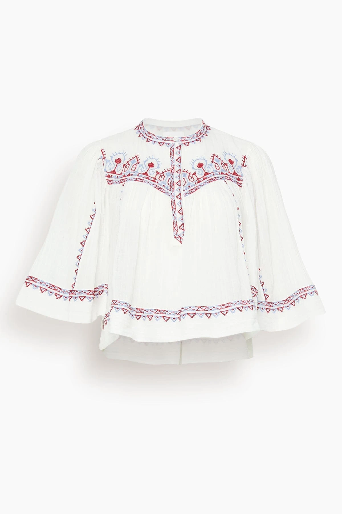 The Isabel Marant Etoile Juline Top has the bohemian flare you love from this designer. This blouse features a loose silhouette with embroidery and a stand collar. Wear yours with jeans and sandals.