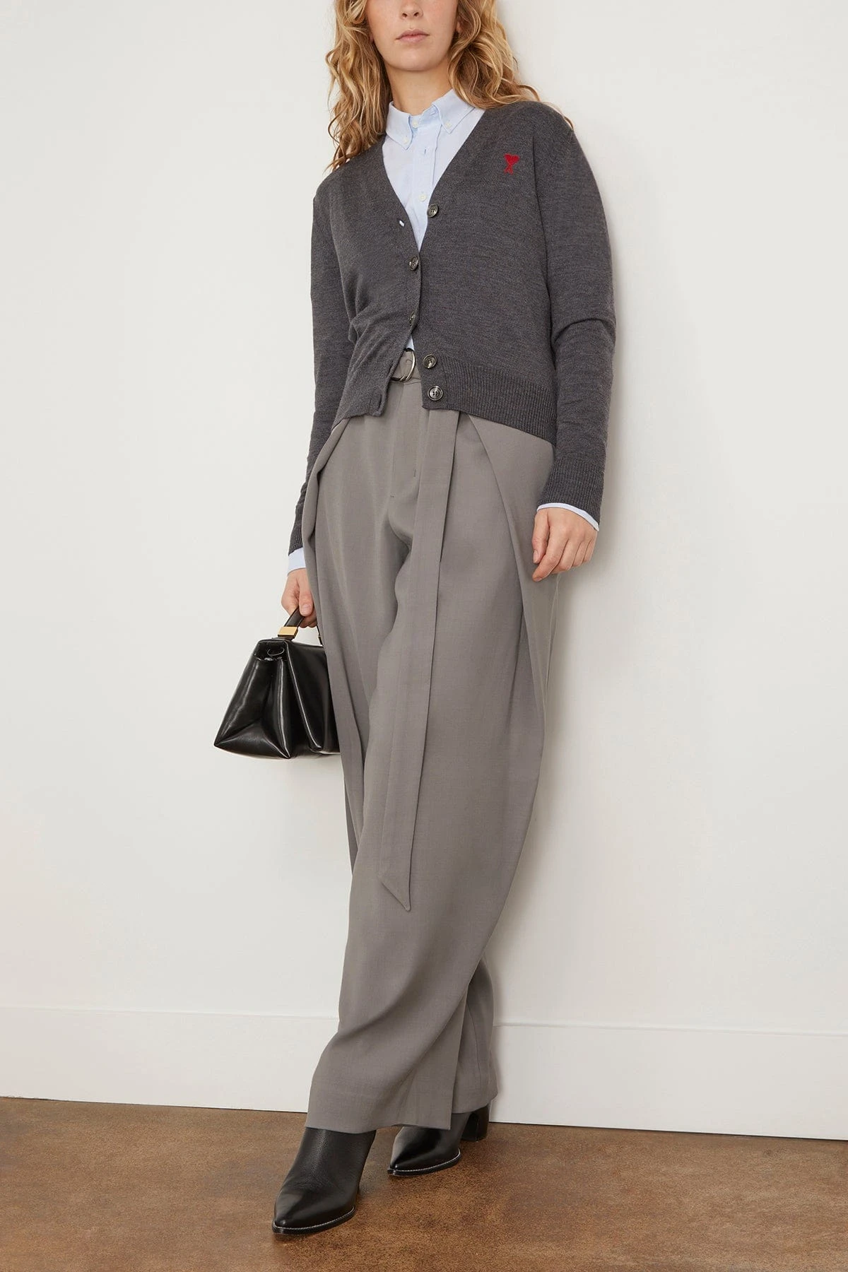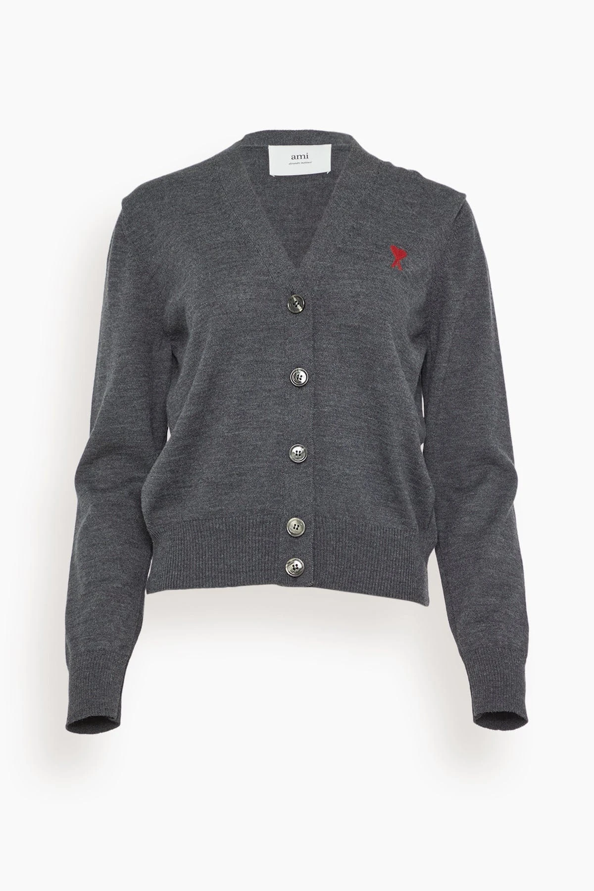 The Ami Red Ami De Coeur Cardigan features their signature logo. You’ll love the slim silhouette of this classic wool cardigan. Wear yours with trousers and boots.