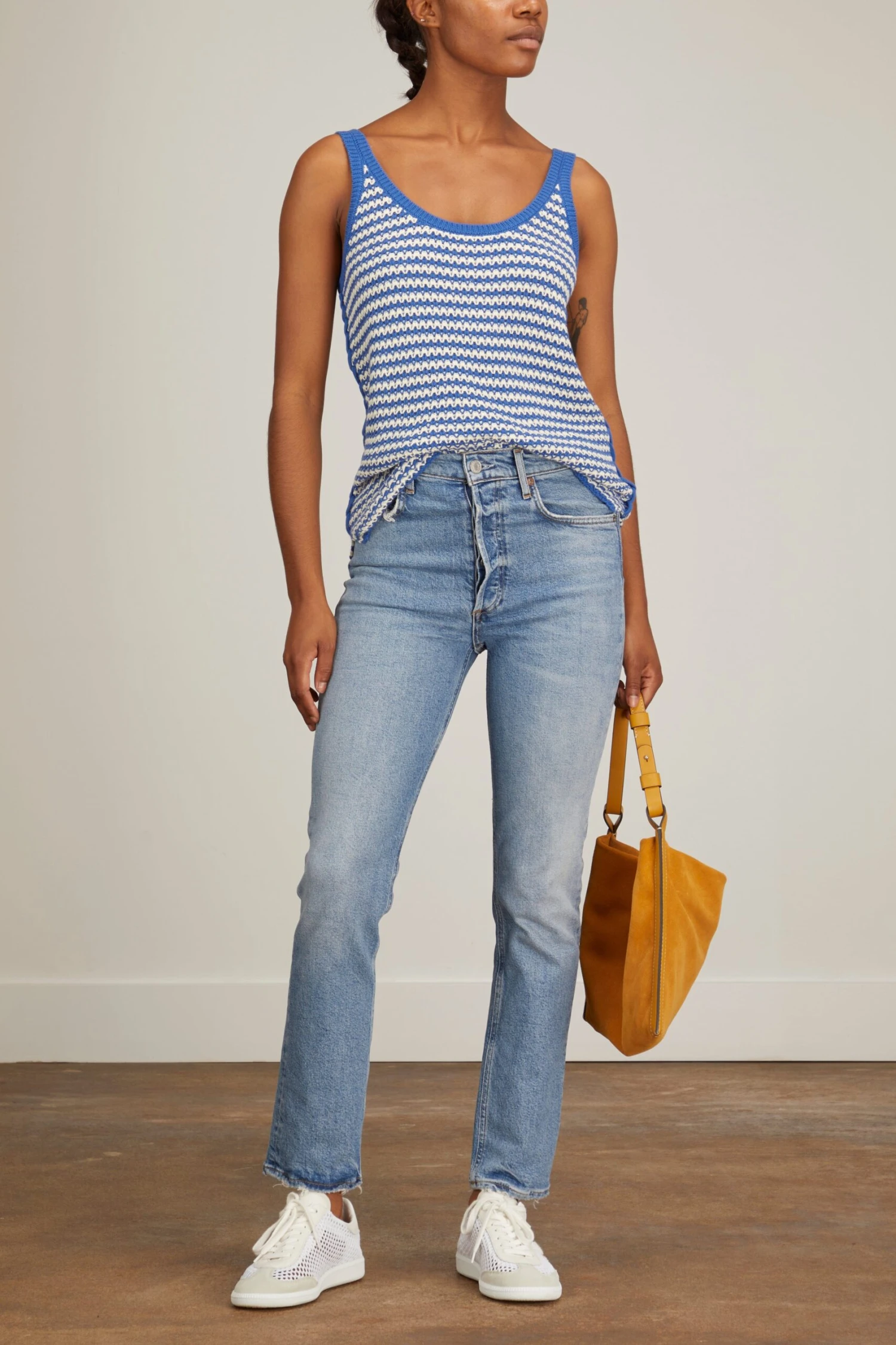 The Odeeh Shirt in Blue/White will be a staple in your summer wardrobe. This tank is crafted in a lightweight striped knit with a relaxed fit. Wear yours with wide leg trousers and sandals.