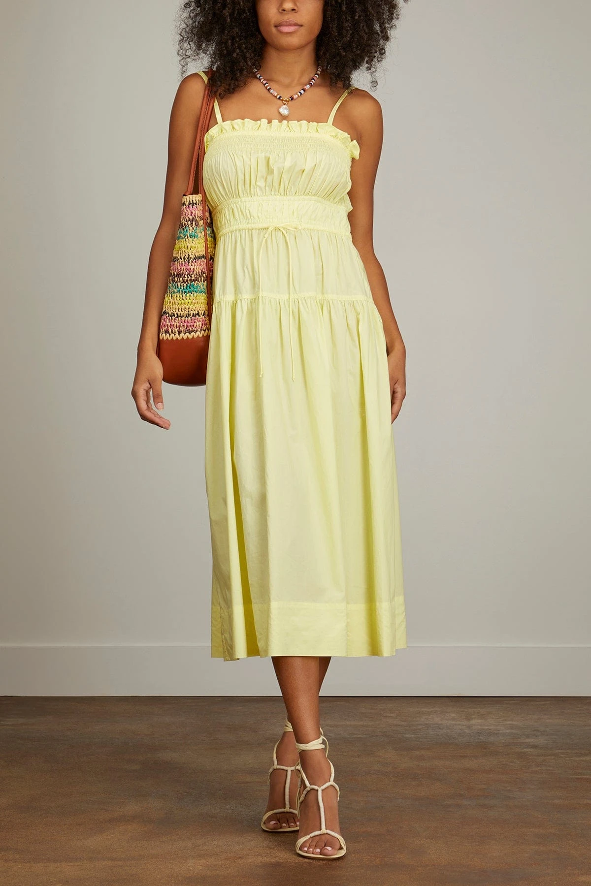 The Ulla Johnson Lisbet Dress features the feminine flare you love from this designer. This midi dress has a smocked bodice with a full skirt in crisp cotton poplin. Wear yours with clogs and a shoulder bag.