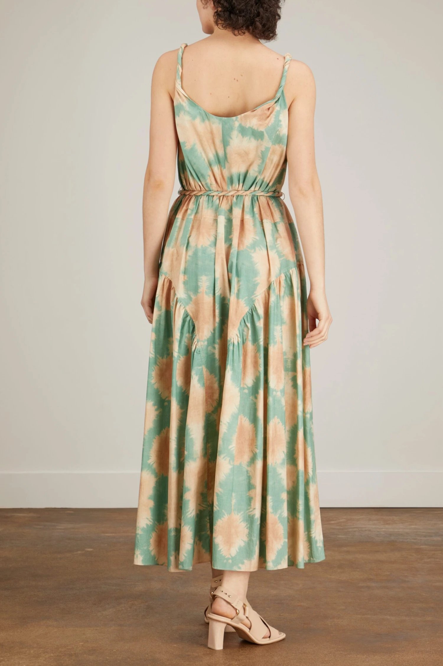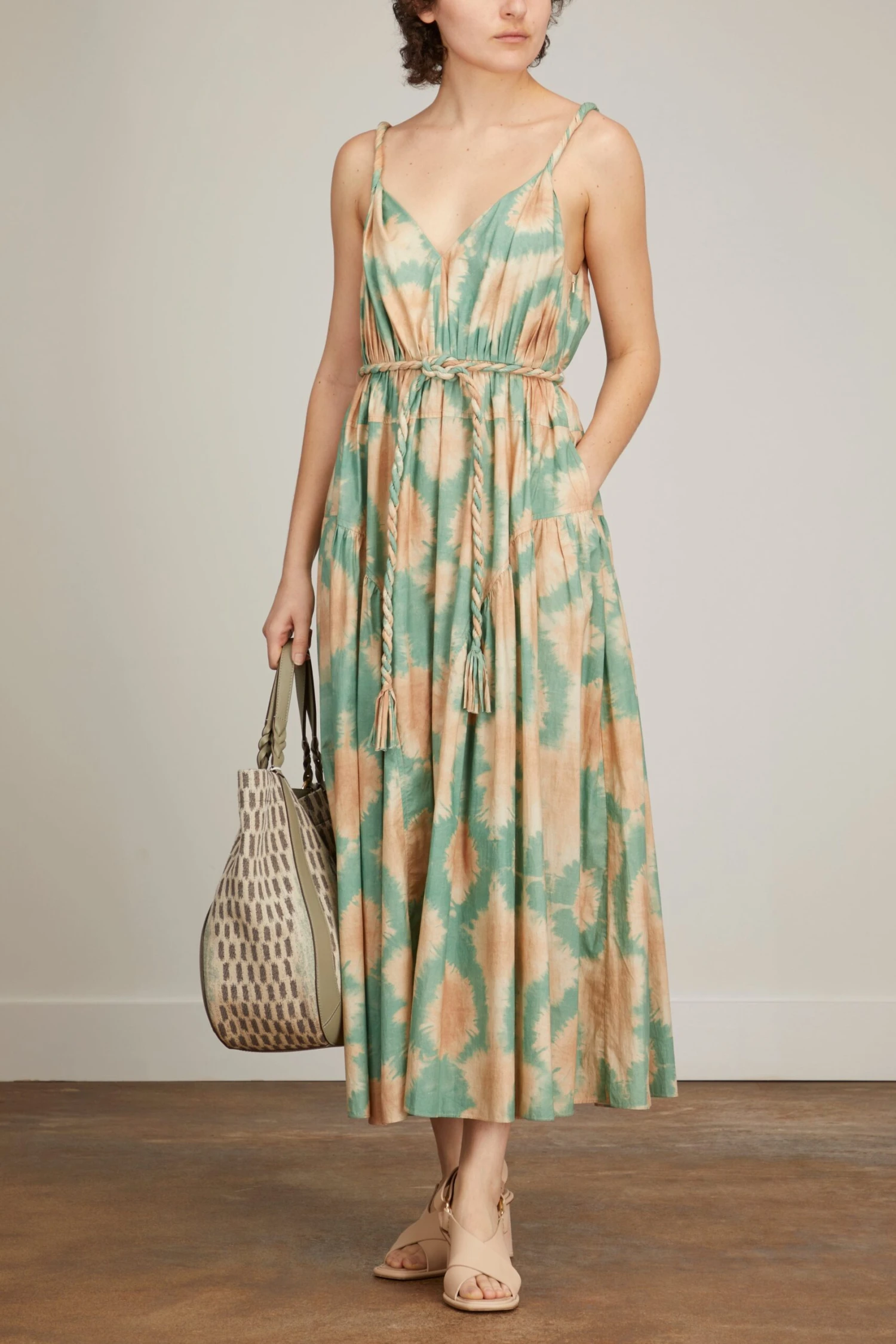 The Ulla Johnson Valentina Dress is crafted in a shibori-inspired cotton poplin. This dress features a relaxed fit hand-twisted straps and a self tie waistband. Wear yours with sandals and a shoulder bag.