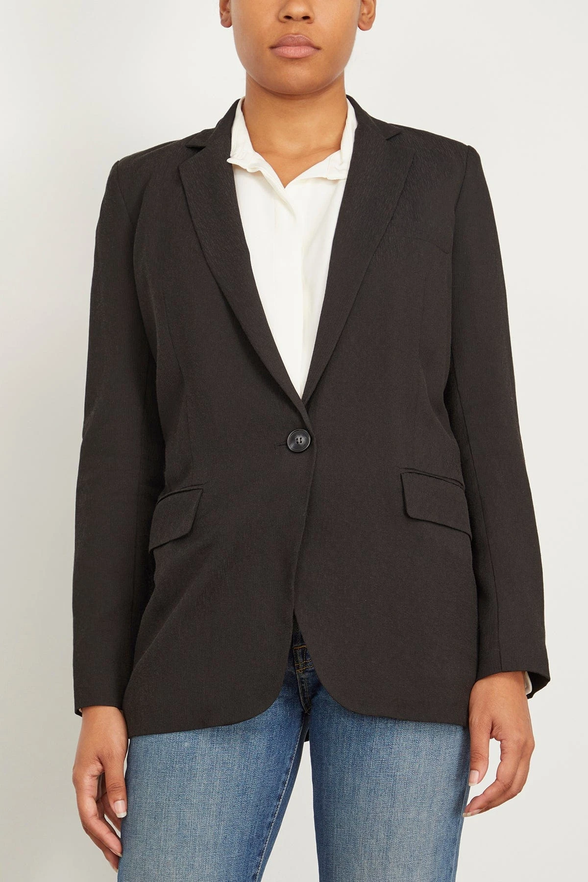 The Vanessa Bruno Tilia Blazer will quickly become a staple in your wardrobe. This blazer features a straight silhouette with a single button closure in a lightweight linen and viscose blend. Wear yours over a t-shirt with jeans.